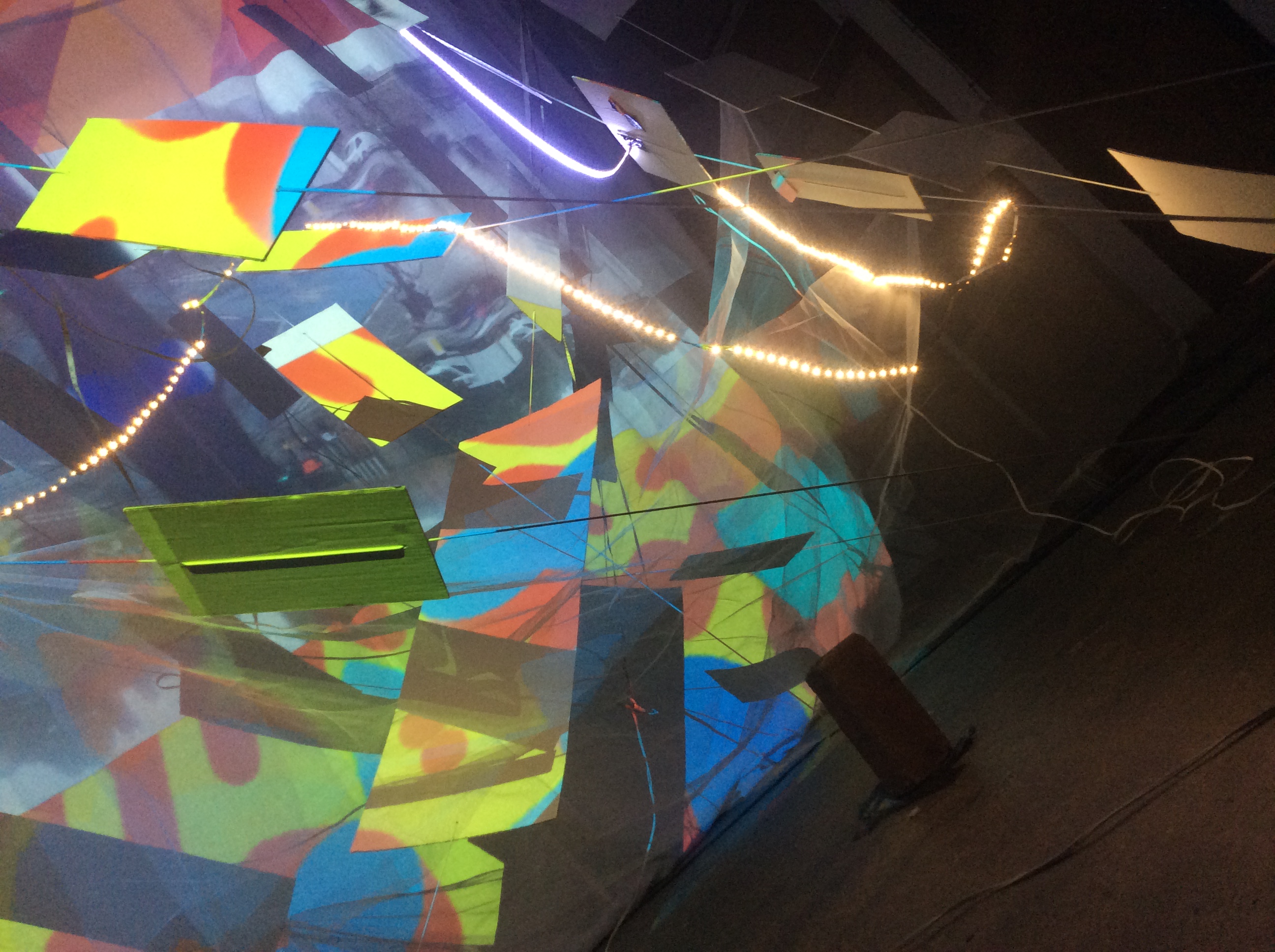 2 dimensional works continue the fractal circuit, as we hover between minds, lines, light and shadow, with depths carved from shape, with enlightening psychedelic agility.